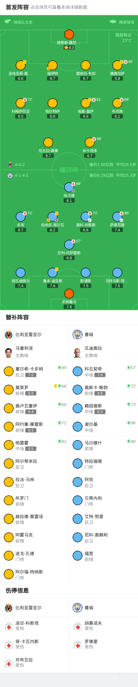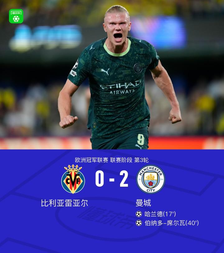 剑南春|曼城2-0客胜比利亚雷亚尔,哈兰德、B席建功